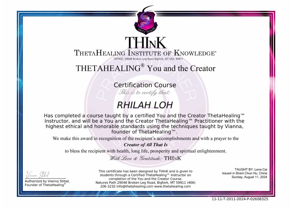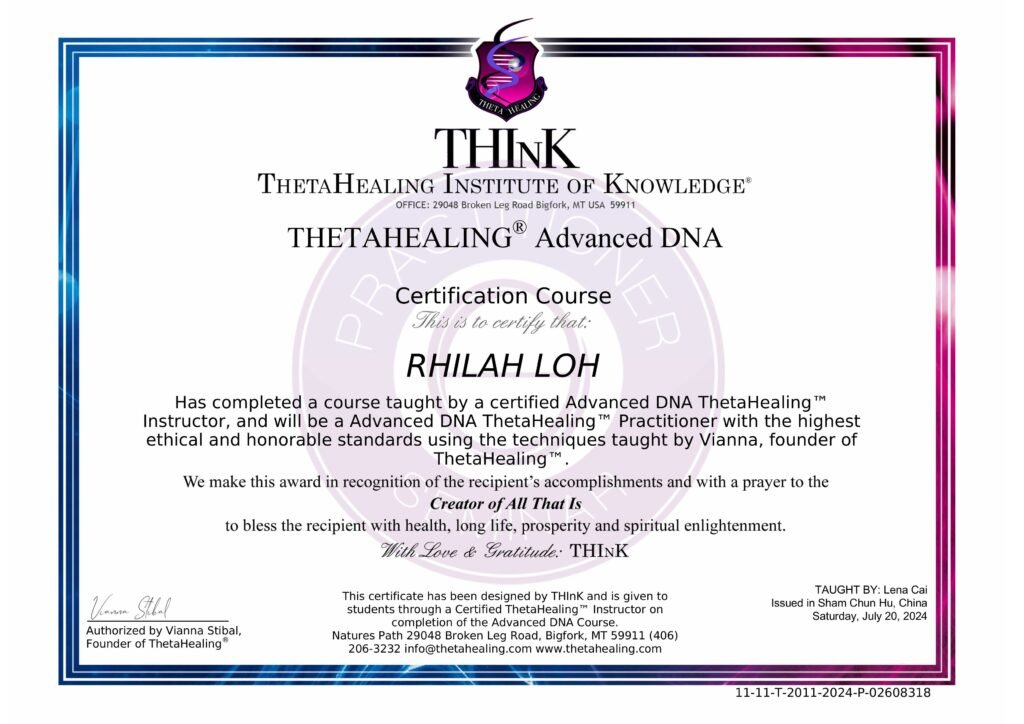 基础培训:成为认证的希塔疗愈师,首先需要参加由ThetaHealing Institute of Knowledge (THInK) 提供的正规培训课程。基础课程包括ThetaHealing® Basic DNA 和ThetaHealing® Advanced DNA,这些课程教授希塔疗愈的基本理论和技术。